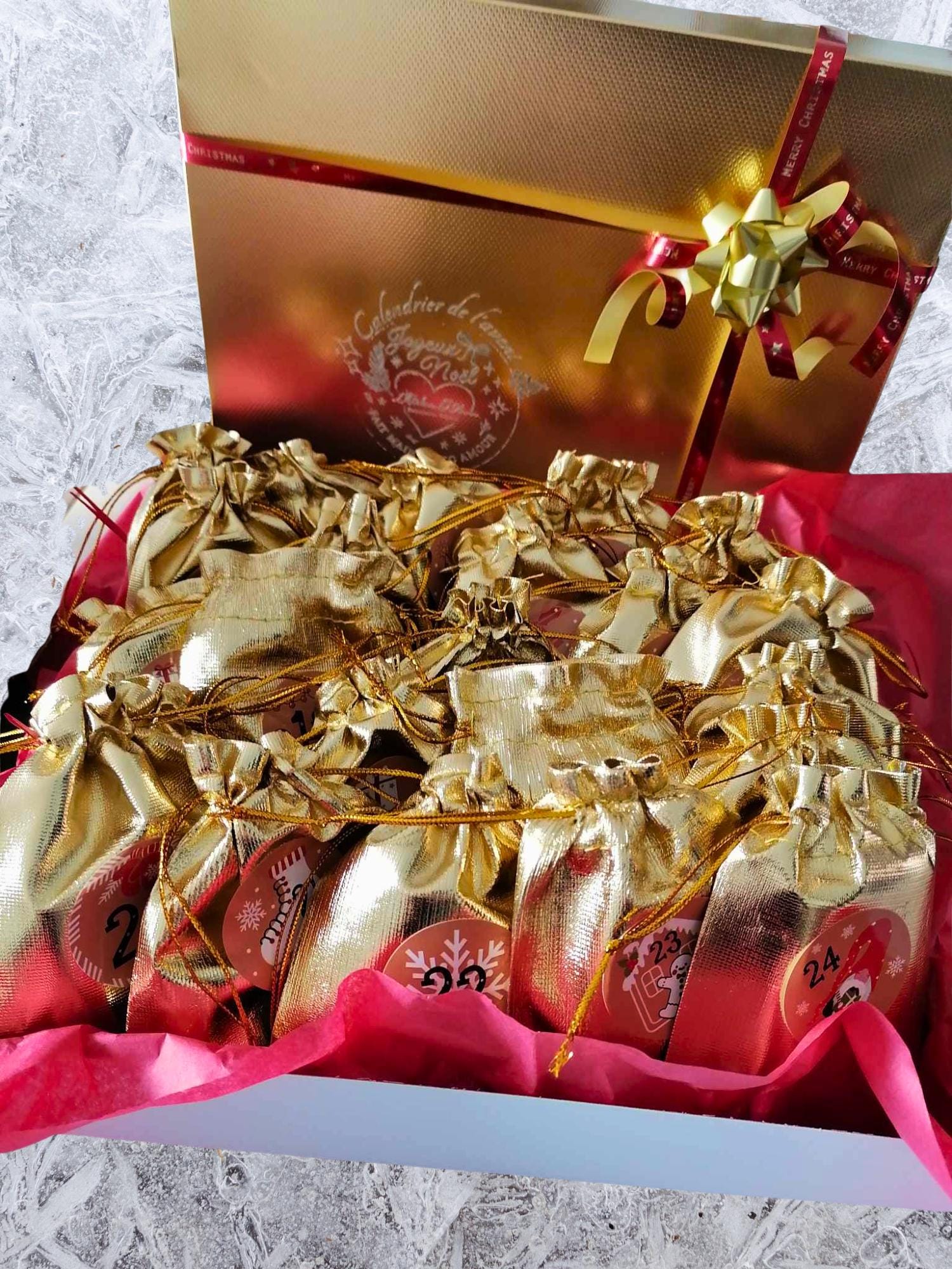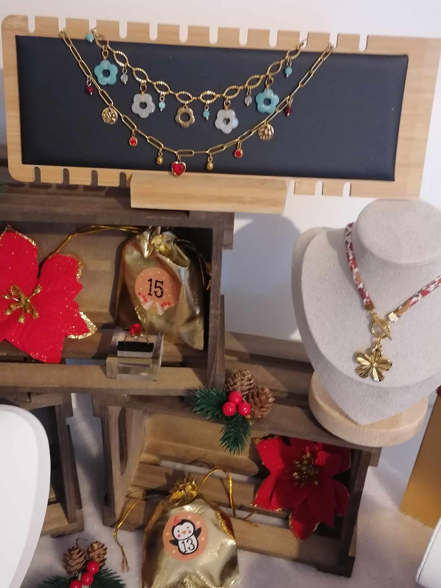 Keep the magic of Christmas alive with a unique and sparkling Advent calendar, filled with jewelry made with love 💖 Every day, discover a new surprise in a little golden pouch: earrings, rings, bracelets or necklaces… A real treasure to open before the holidays! ✨