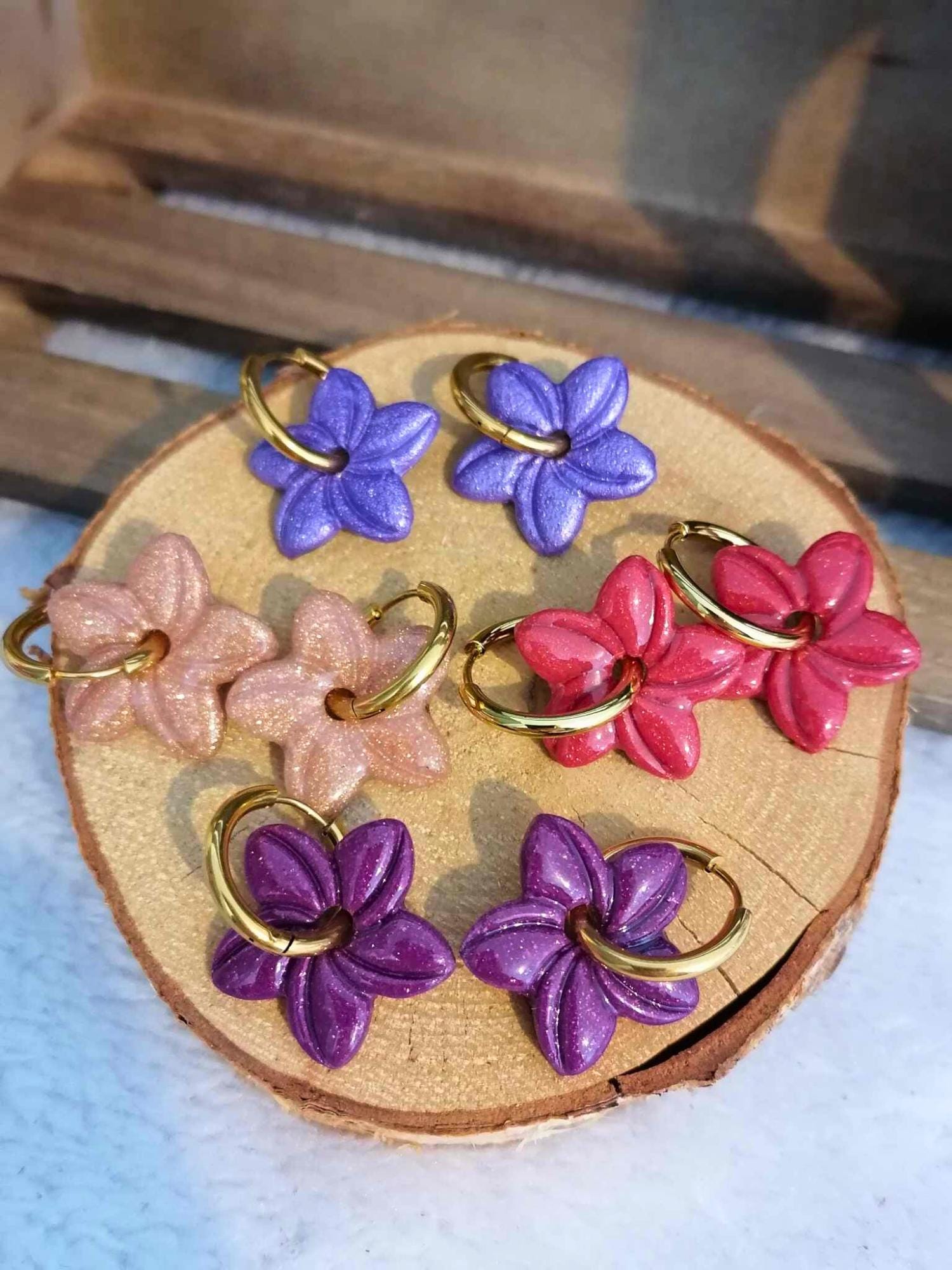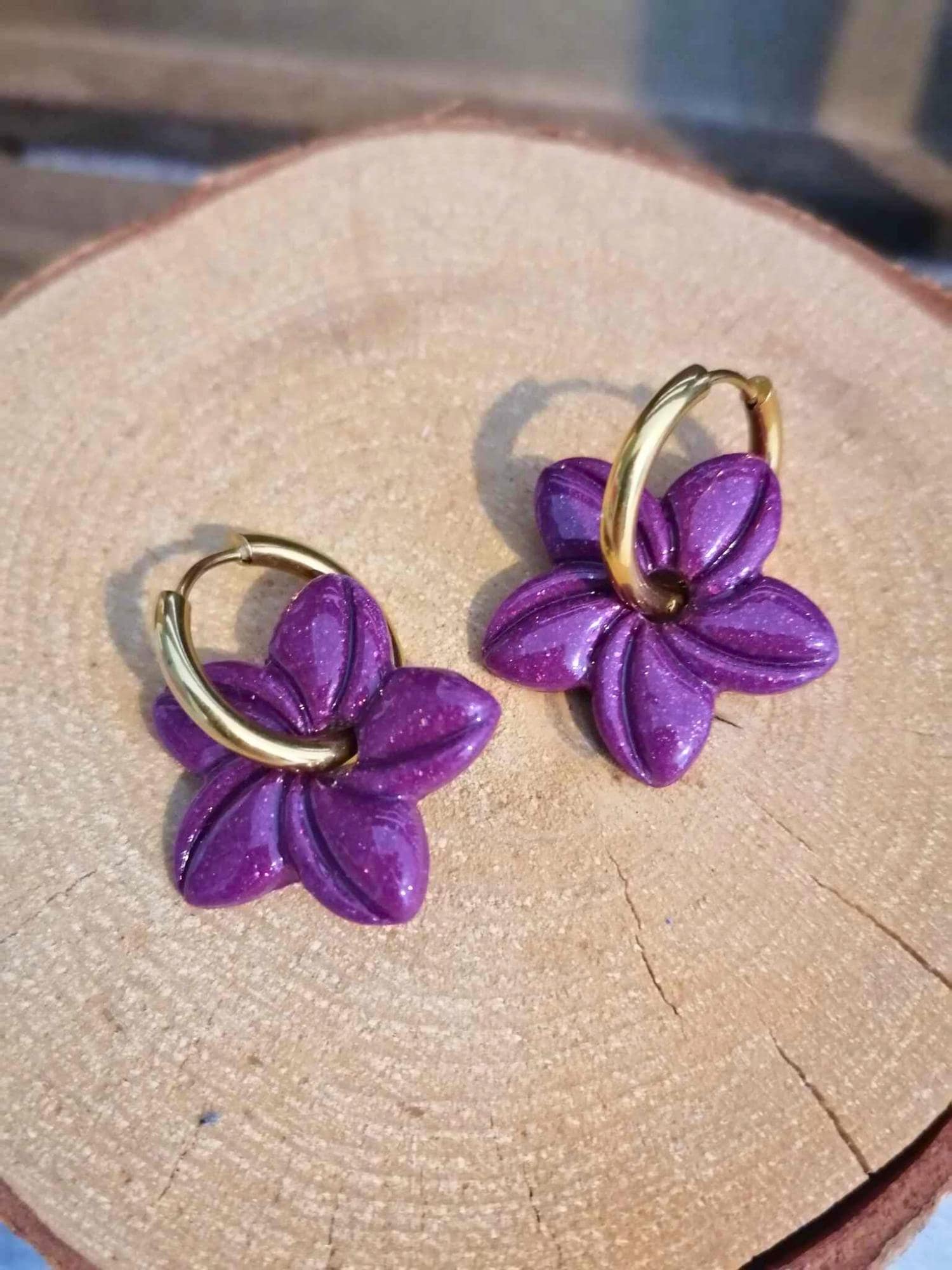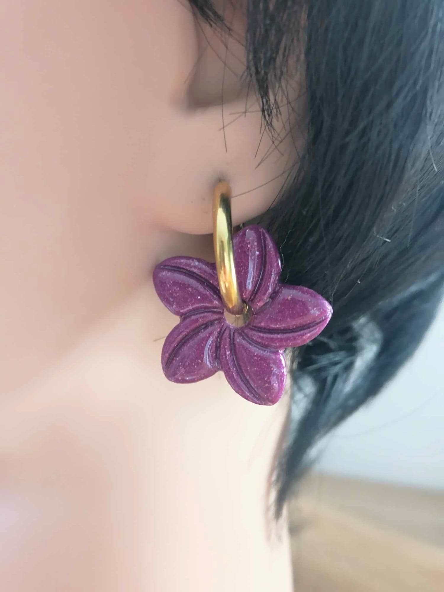 Available in several luminous shades (powder pink, plum, purple, raspberry red), these charms easily attach to your gold-plated stainless steel hoops to create modular earrings that suit your style and desires ✨